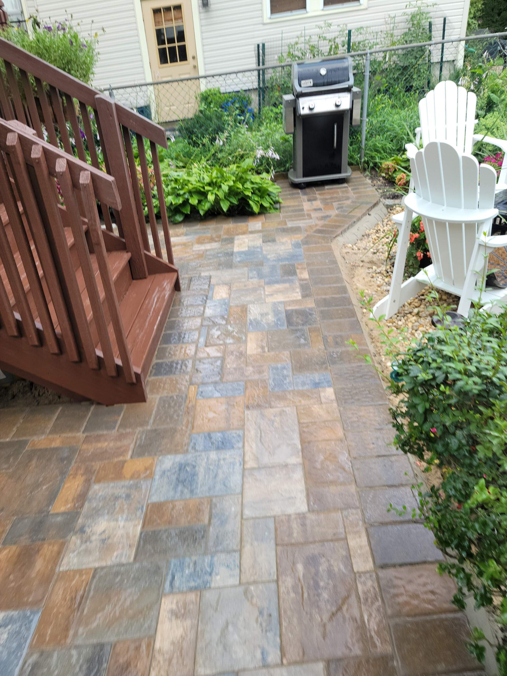 Our patios are designed to withstand the natural elements and a significant amount of weight. You can also add furniture, swing sets, a fire pit, and more to your patio. Your patio will be made using interlocking pavers and tiles to provide a perfect stable fit. We also add polymeric sand to the joints of the paver to make them stronger and to prevent moisture from leaching into the patio.