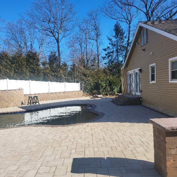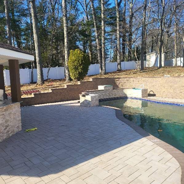 At On Time Paver Installers, we specialize in a wide range of outdoor living and waterscape construction as well as paving stones and concrete in Suffolk and Nassau Counties. Our team of specialized contractors has extensive experience in the landscaping and construction industry. We have a successful record of creating beautiful driveways, patios, porches, outdoor kitchens, firepits, poolscapes, backyards, and cultured stone facades for residential buildings.